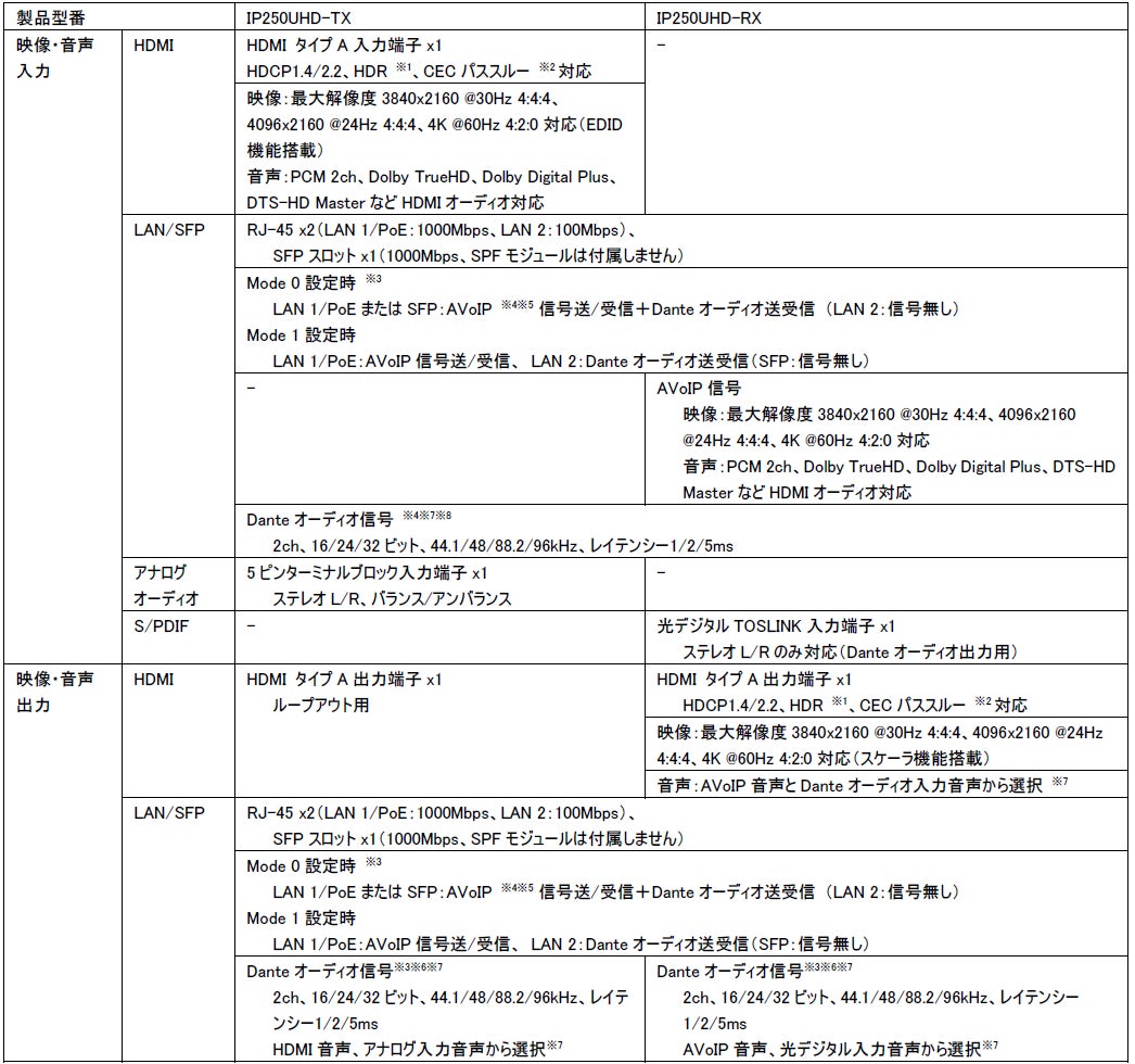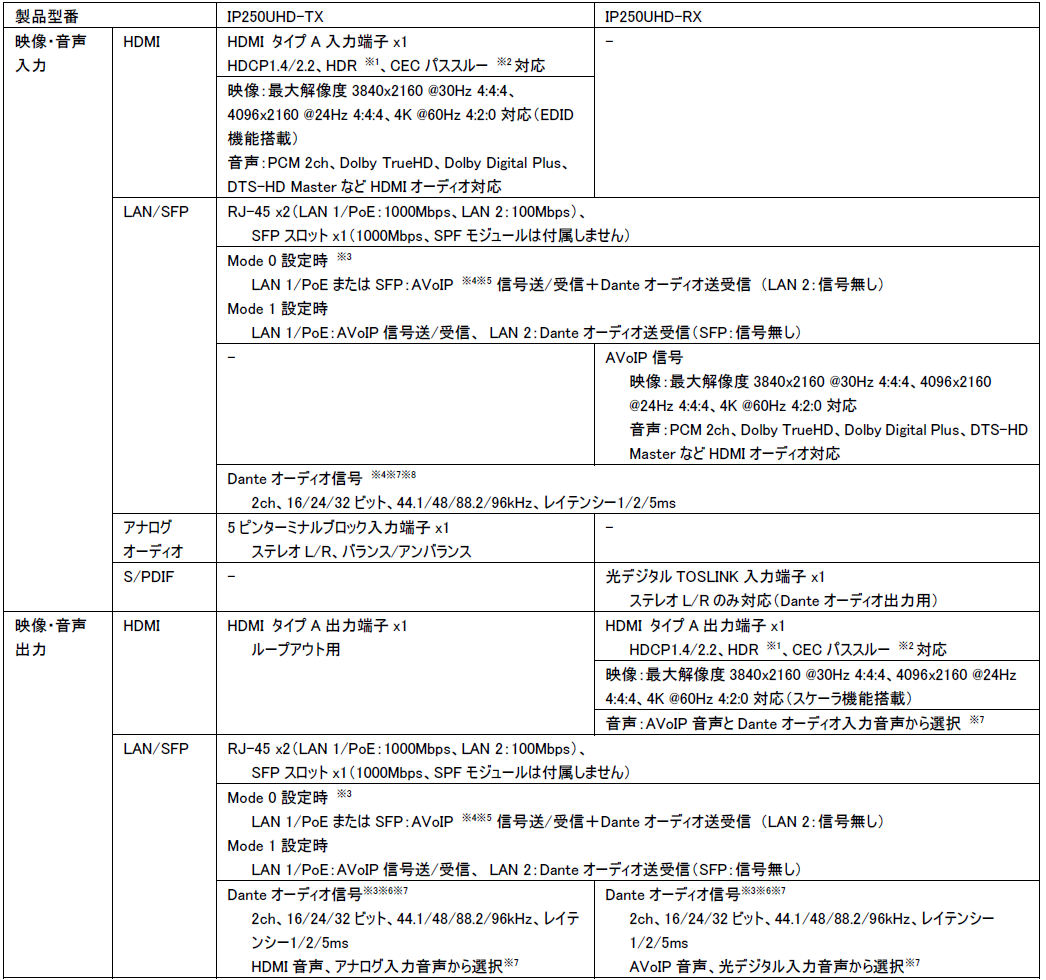 ※5 AVoIP信号は映像・音声信号以外に、IR双方向、シリアル(RS-232)、USB/KVM信号が含まれます。