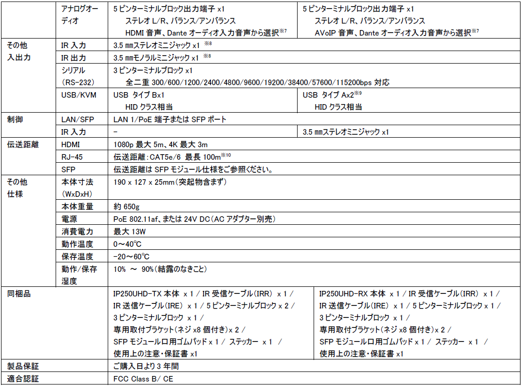 トランスミッタ [型番:IP250UHD-TX] / レシーバ [型番:IP250UHD-RX]