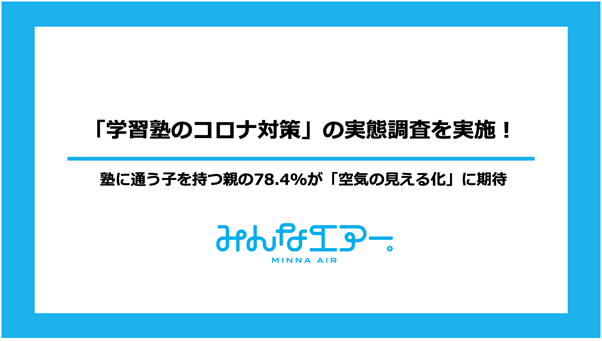 「顔の見えるライフスタイル」の実現を目指す株式会社UPDATER(所在地:東京都世田谷区、代表取締役:大石英司)のエアテック事業「みんなエアー」(https://minnaair.com/)は、塾に通う子を持つ親111人を対象に、「学習塾のコロナ対策」の実態調査を実施しました。