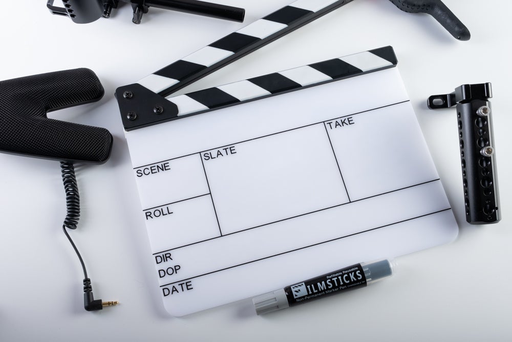 ブランドを代表するアイテムである「クラッパースティック」は、従来の木製タイプよりも防水性と丈夫さに優れたABS樹脂を採用し、軽量ながら頑丈で、数々の映画制作現場で活躍しています。