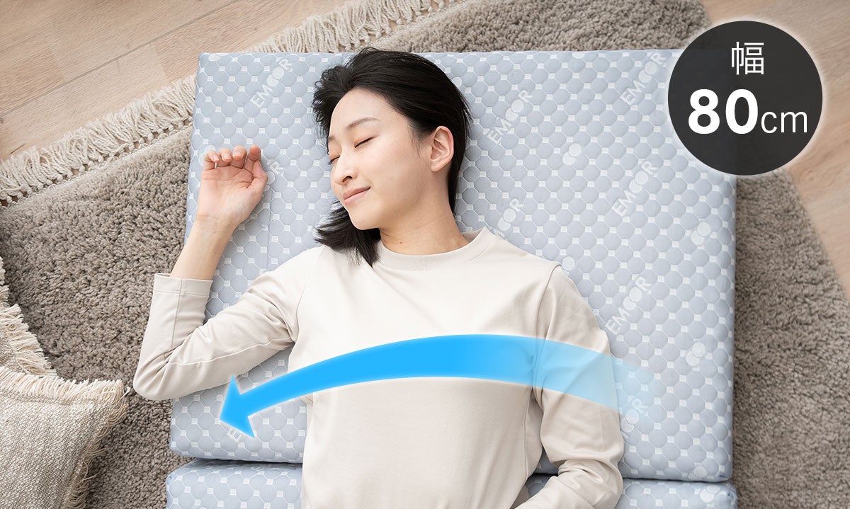 コンパクトサイズの中でもマットレスに狭さを感じにくい幅約80cm。寝返りも無理なくでき、快適に体を動かせます。同シリーズの幅65cmのマットレスだと寝返りがしづらい…と感じていた方にも最適なサイズになりました。