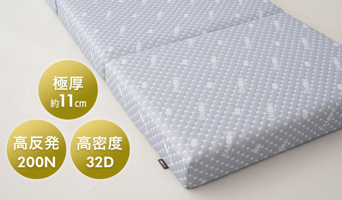 ■高密度32D…マットレスは分厚くても密度が低いとへたりがちですが、32Dの高密度ウレタンを採用することで耐久力に優れたマットレスを実現。