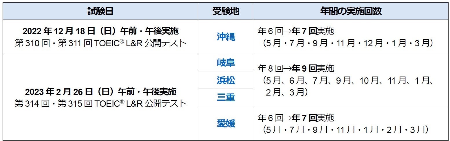 TOEIC® Listening & Reading公開テスト、2022年12月・2023年2月の実施エリアを拡大