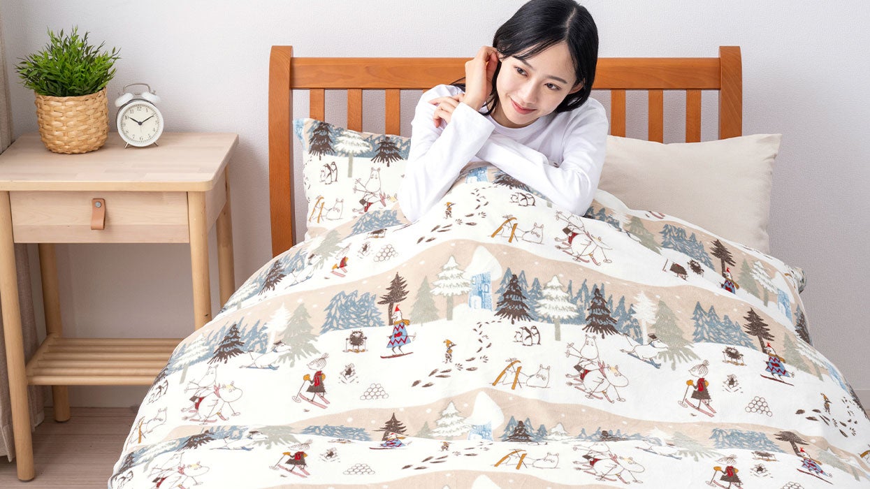 かわいいムーミン柄のあったか掛けカバー、フランネル素材の柔らかな肌触りと暖かさ◎