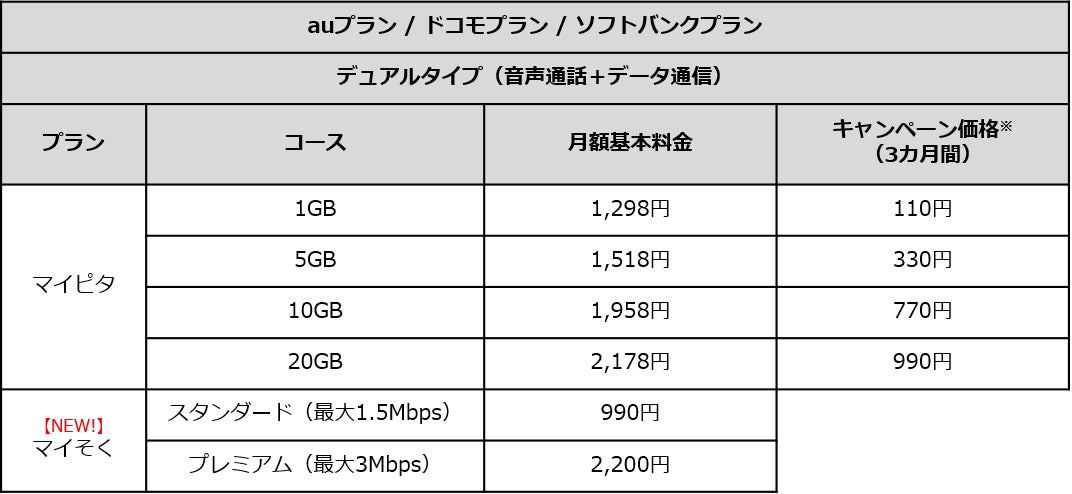 - 【参考】「マイピタ」・「マイそく」料金プラン表