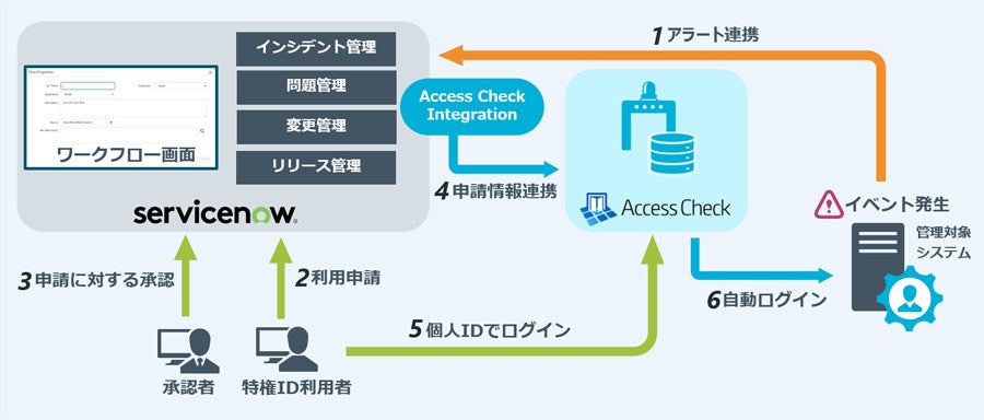 図1:「Access Check Integration」を使ったServiceNow IT Service Managementとの連携イメージ