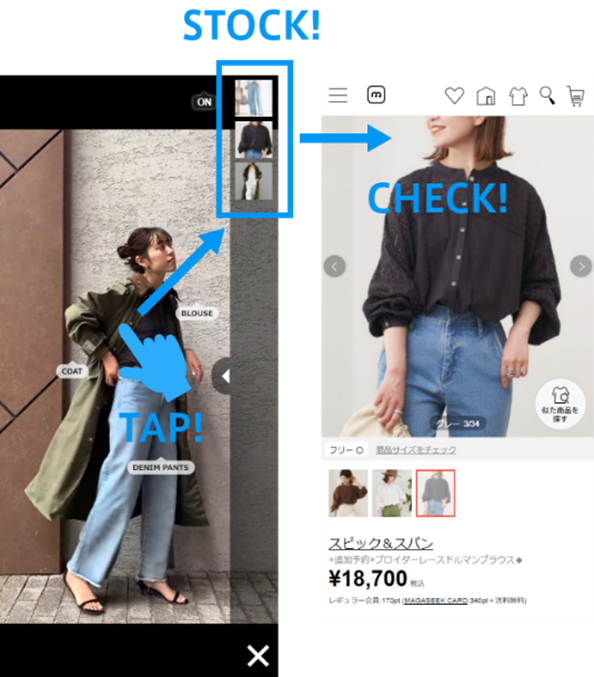人気ショップの新作アイテムをタップして情報にアクセスできる次世代技術「TIG」でご紹介