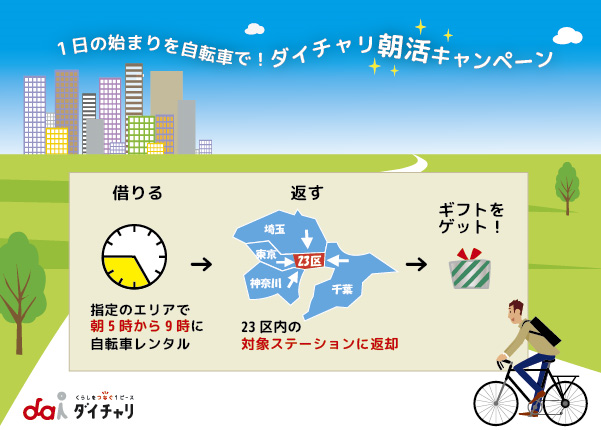 | 名称 | : | 1日の始まりを自転車で!ダイチャリ朝活キャンペーン |