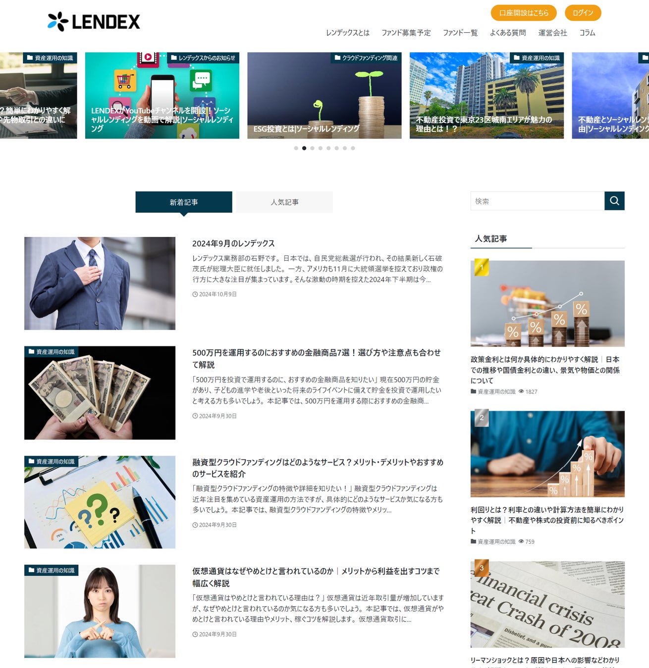 この度、融資型クラウドファンディング「レンデックス(LENDEX)」を運営する株式会社LENDEX(本社:東京都渋谷区、代表取締役:中村 智)は、本日、公式コラムをリニューアルしたことをご報告いたします。コラムはこちら▶https://blog.lendex.jp/
