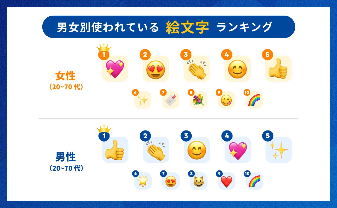 【7/17は世界絵文字デー】女性ユーザーに一番使われている絵文字はキラキラハート「💖」、男性ユーザーはいいね「👍」。オンラインコミュニケーションにおける絵文字利用の実態を解説。