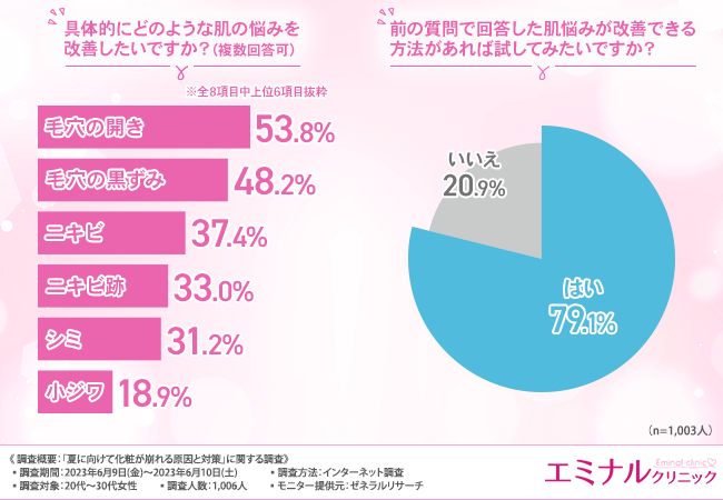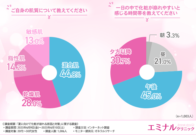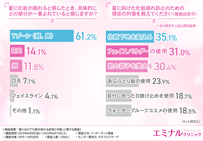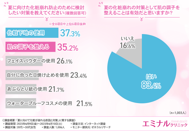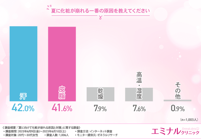 そこで今回、ダーマペンの施術を手掛けるエミナルクリニック(https://eminal-group.jp/dermapen/?refmedia=70039)は、20代〜30代女性を対象に、「夏の化粧崩れの原因と対策」に関する調査を実施しました。