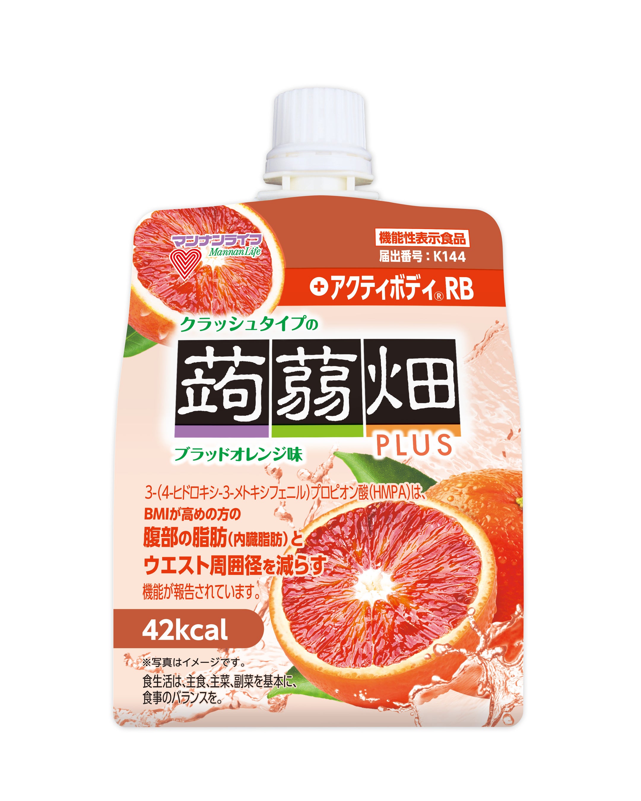 【機能性表示食品】BMIが高めの方の腹部の脂肪とウエスト周囲径を減らす!3月2日(月)「クラッシュタイプの蒟蒻畑プラス」からブラッドオレンジ味が新発売!