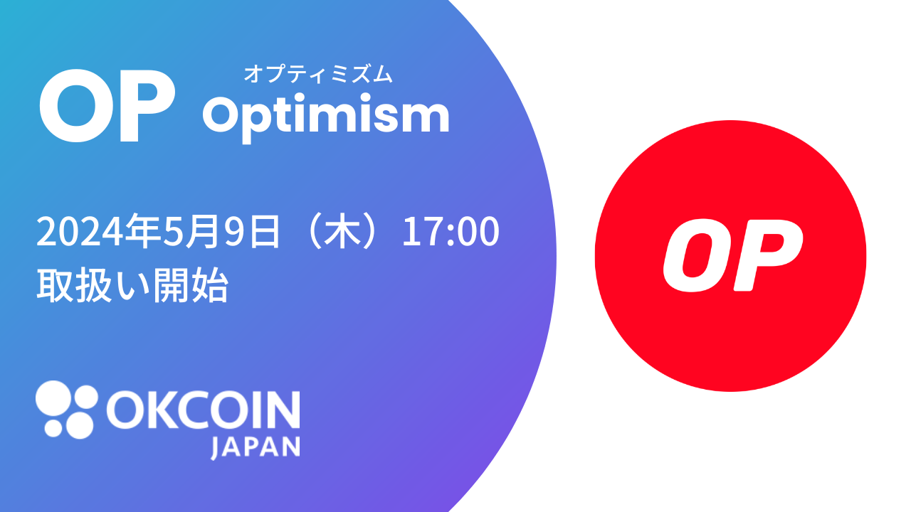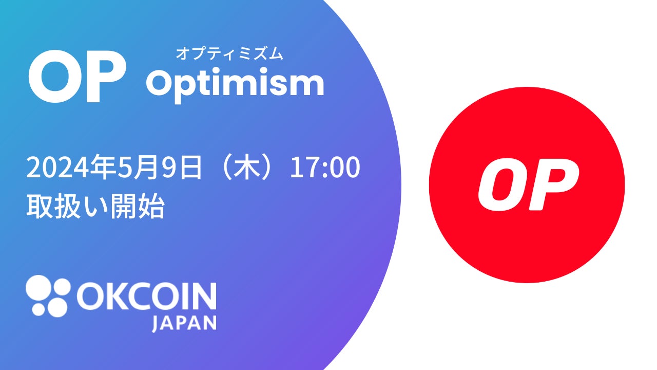 当社は、OKCoinJapan(暗号資産取引所)にて、『オプティミズム(OP)』を2024年5月9日(木)に取扱い開始することをお知らせいたします。これにより、OKCoinJapanは、40種類の暗号資産を取扱うことになります。