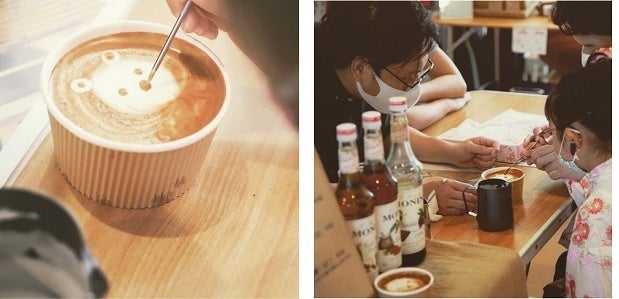 プロのコーヒーマイスターの指導のもと、おうちではなかなかできないラテアートが手軽に体験できます。クマさん、ネコちゃん、ワンちゃん…と、とってもかわいいアートが描けますよ♪紙に描くアートとは、また違う「わくわく」「ドキドキ」を感じることができるラテアート体験です。体験いただいた方には、手づくり工房の焼き菓子をプレゼント!ぜひ親子でご参加ください。