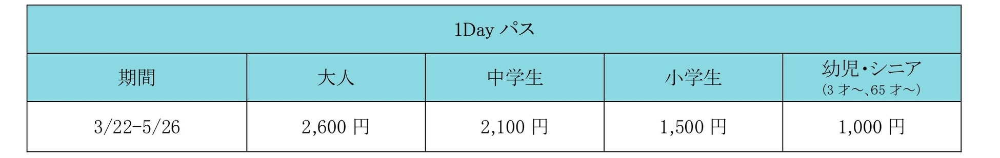 ●ご入園には、「来園日指定チケット(1Dayパス)」が必要です。事前に電子チケットをご購入いただくか、お近くのコンビニエンスストアでお買い求めください。