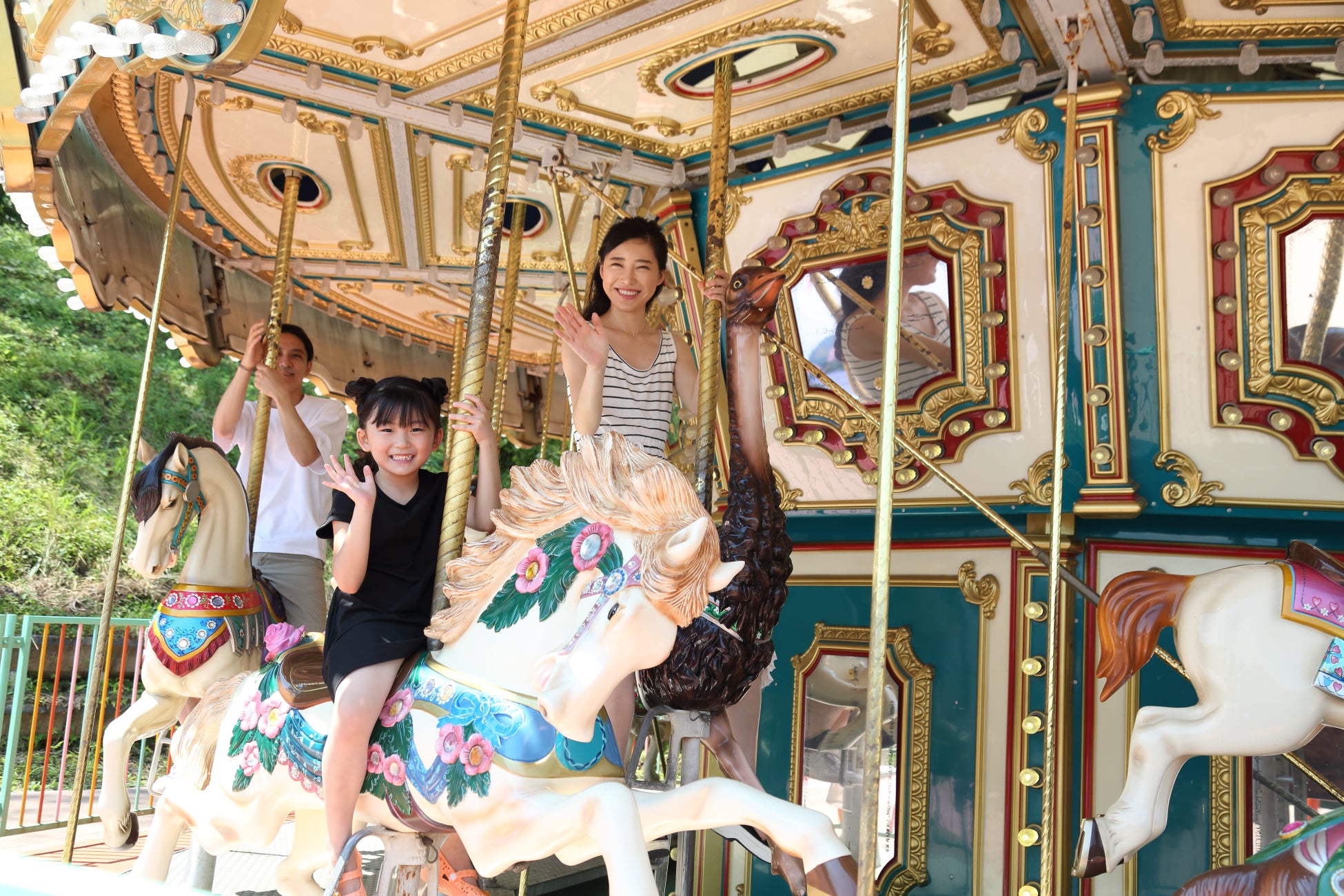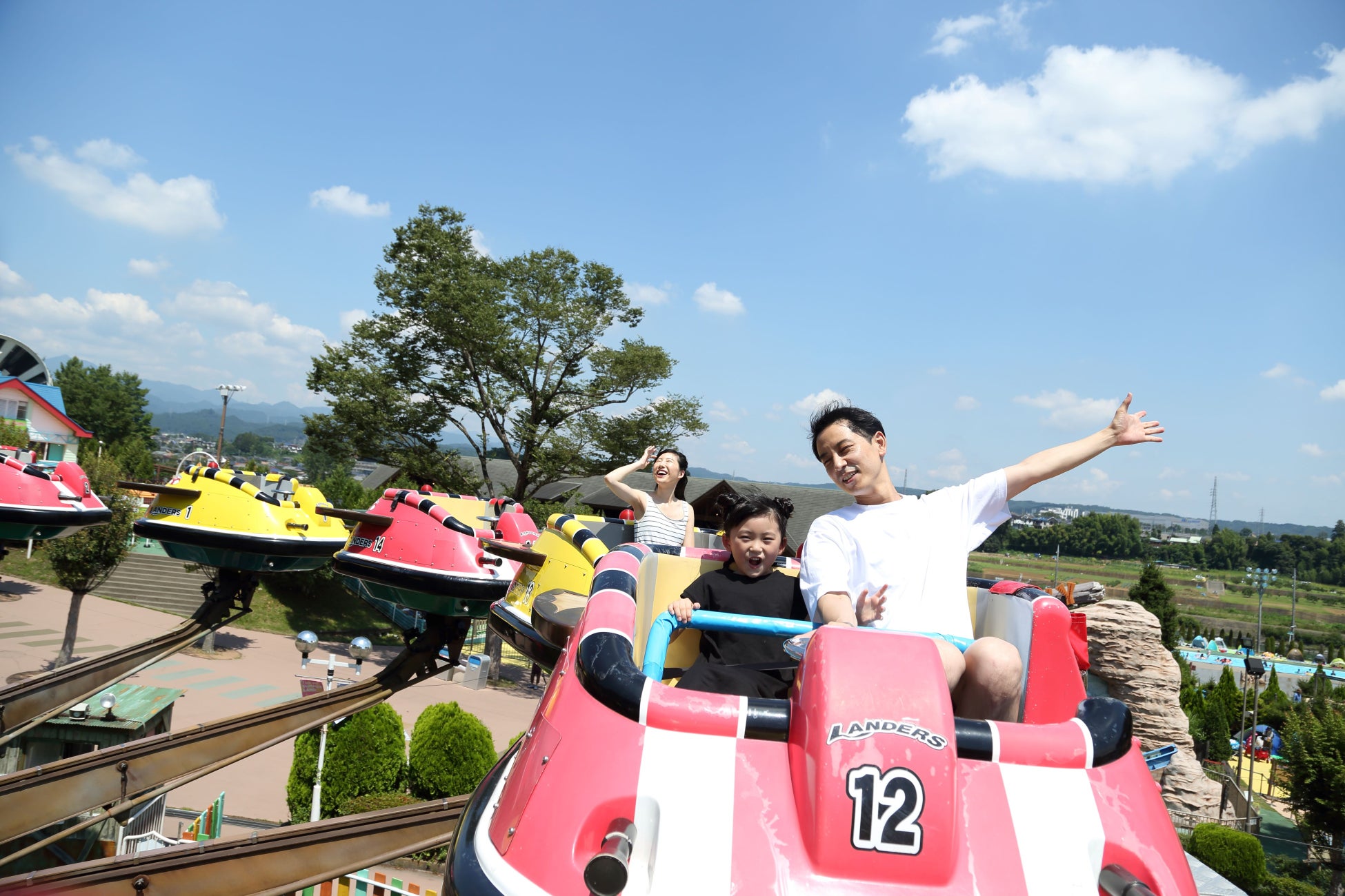 お子様から大人まで、定番アトラクションが充実した自然いっぱいの屋外遊園地エリア。