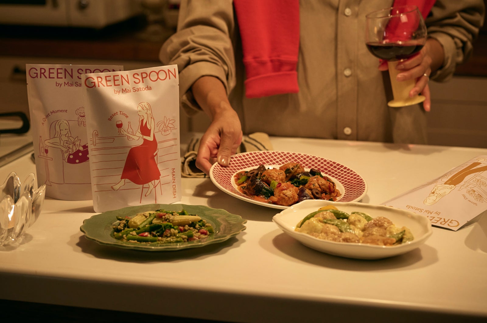 株式会社Greenspoonが企画・製造・販売する、たっぷり野菜のヘルシーおうちごはん「GREEN SPOON」は、里田まいさん監修のコラボメインディッシュを2025年10月17日(金)より発売いたします。ひとりで過ごす時間に、ワインを片手にGREEN SPOONを楽しむことが多いという里田さんが、リアルに食べたい味わいにこだわった大人のメニュー3種類が数量限定で登場です。
