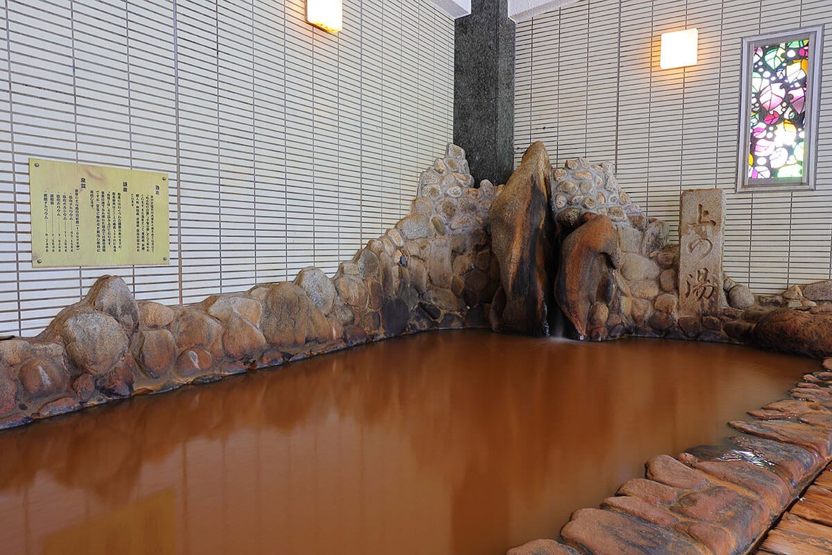 Point3.内湯岩風呂(金泉)・内湯石風呂(白湯)・露天檜風呂(銀泉)