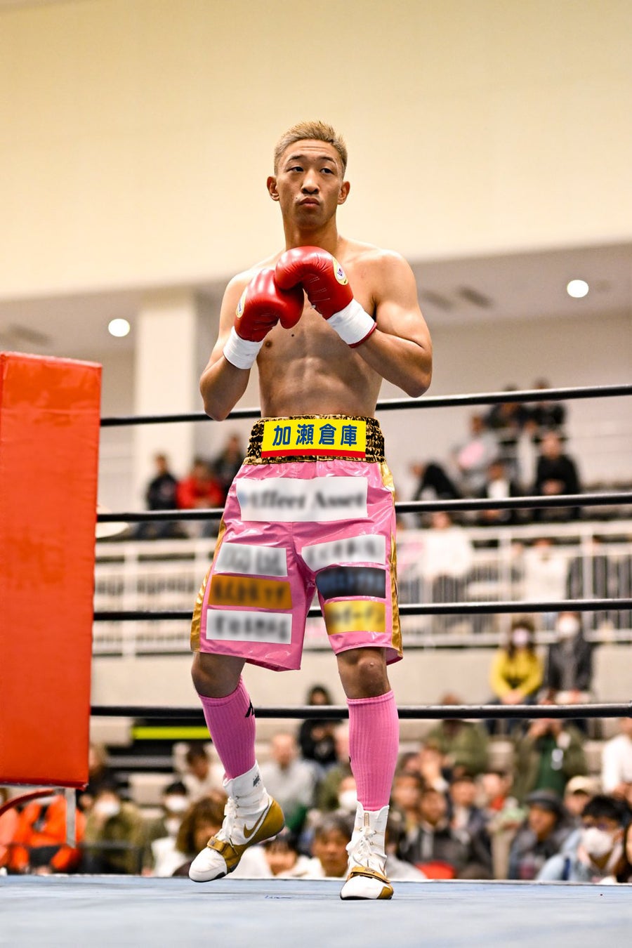 加瀬倉庫ロゴ入りボクサーパンツでプロ3戦目に挑む!