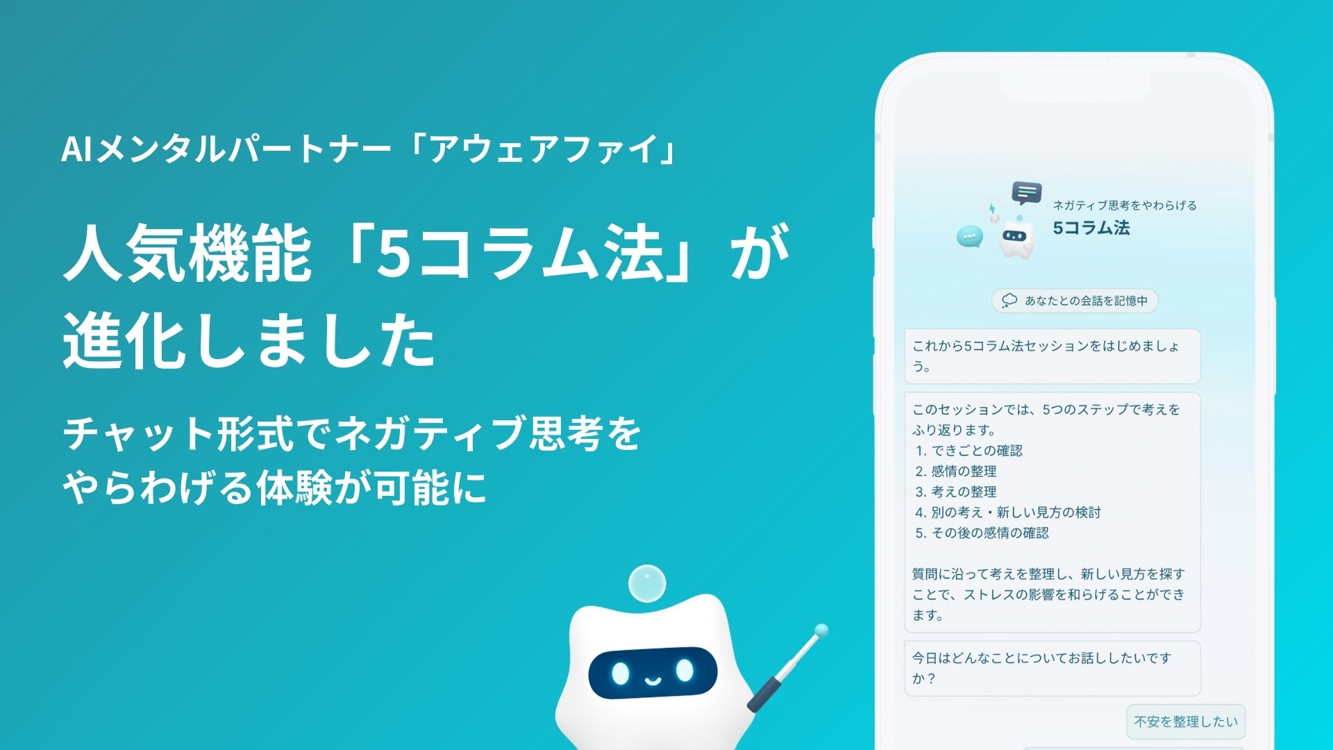 アプリ「アウェアファイ」の人気機能「5コラム法」が進化!チャット形式での体験が可能になりました