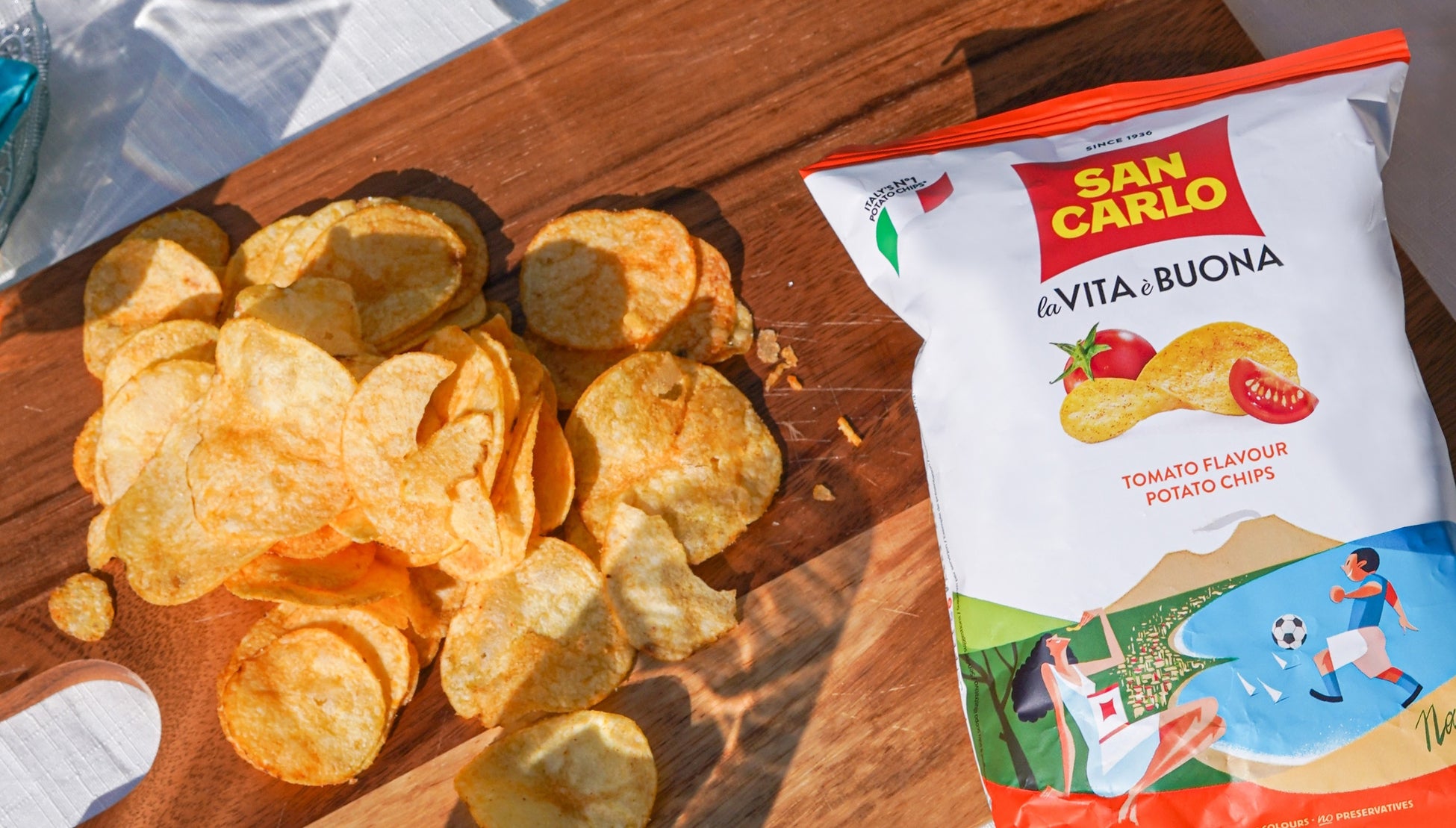 サンカルロは1936年イタリア・ミラノの老舗ロティサリーからスタートした、イタリアチップス市場60%のシェアを誇るイタリアNo.1チップスブランド。創業者、フランチェスコ・ヴィタローニがミラノのサン・カルロ教会近くにロティサリー「Rosticceria San Carlo」をオープン。名物となったスペシャルな「クリスピーポテト」の人気は数年の間に街中に広がり、イタリアNo.1メーカーに。圧倒的なリーディングカンパニーとして現在もイタリアのチップス業界を牽引しています。ブランドコンセプト「la VITA è BUONA(LIFE IS GOOD)」はイタリア人の生き方。一口食べるごとにイタリアを感じさせるサンカルロ。すべての瞬間を明るく楽しむイタリアンスタイルで、プレミアムで楽しい瞬間をサクサクのサンカルロと共に。