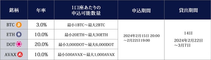 また、Prime優遇プログラム新設を記念して、大口のお取引をされるお客さま向けに特別年率の貸コイン(レンディング)を提供いたします。