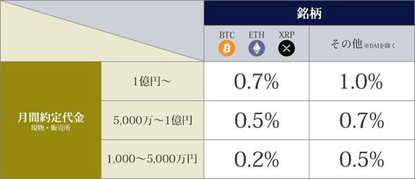 2024年2月以降、月間の約定代金(現物・販売所)(DAIを除く)が合計1,000万円以上になった月(対象月)について、翌月に日本円で以下の水準にてキャッシュバックいたします。