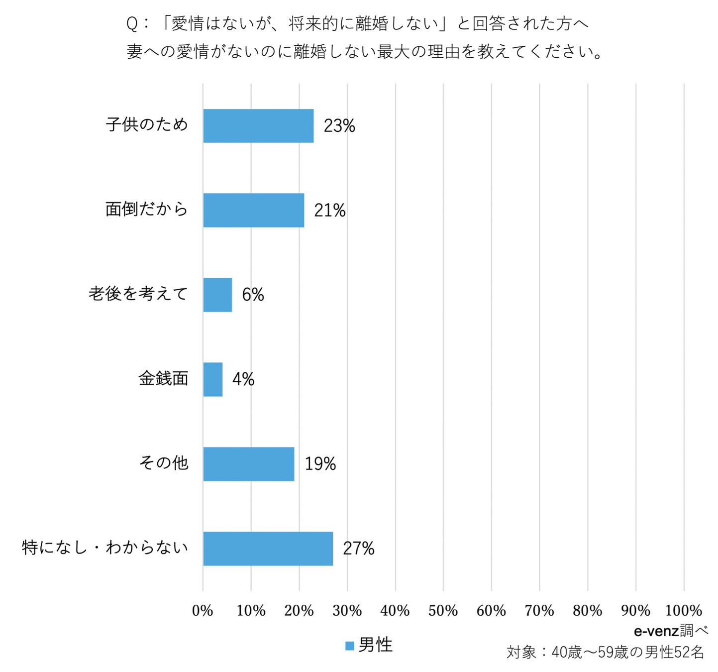 妻に愛情のない夫の行動やその心理などを調査すべく、今回e-venzでは40代から50代の既婚男性を対象に妻に愛情のない夫の行動に関するアンケート調査を実施しました。