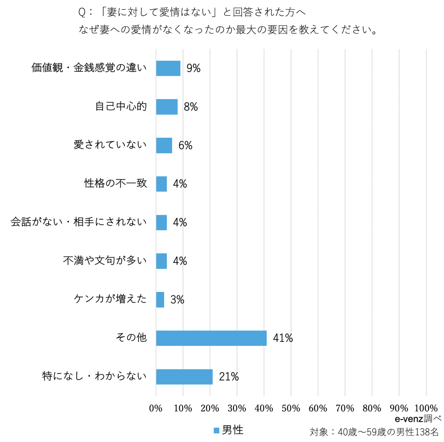 「妻に対して愛情はない」と回答した方に、愛情がなくなった最大の理由は何か調査してみました。