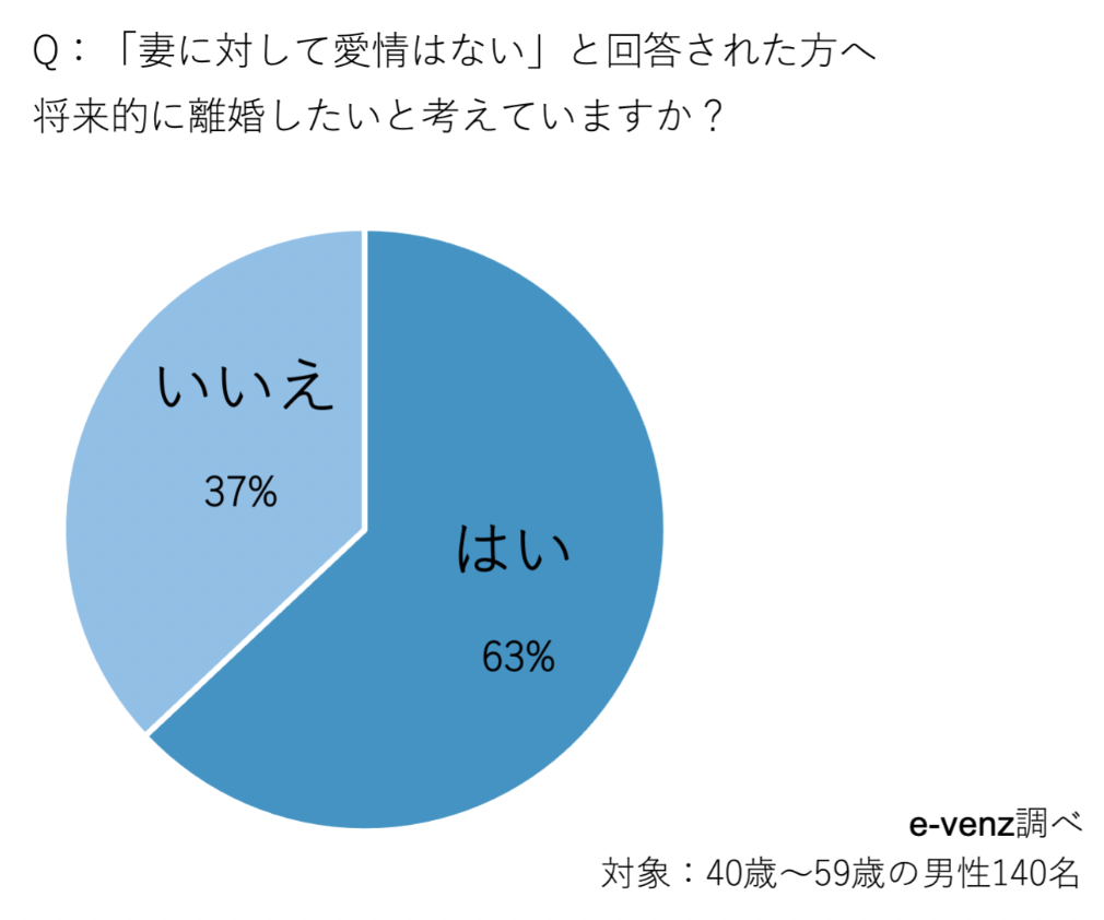 「妻に対して愛情はない」と回答した方に、将来的に離婚したいと考えているのかを調査してみました。