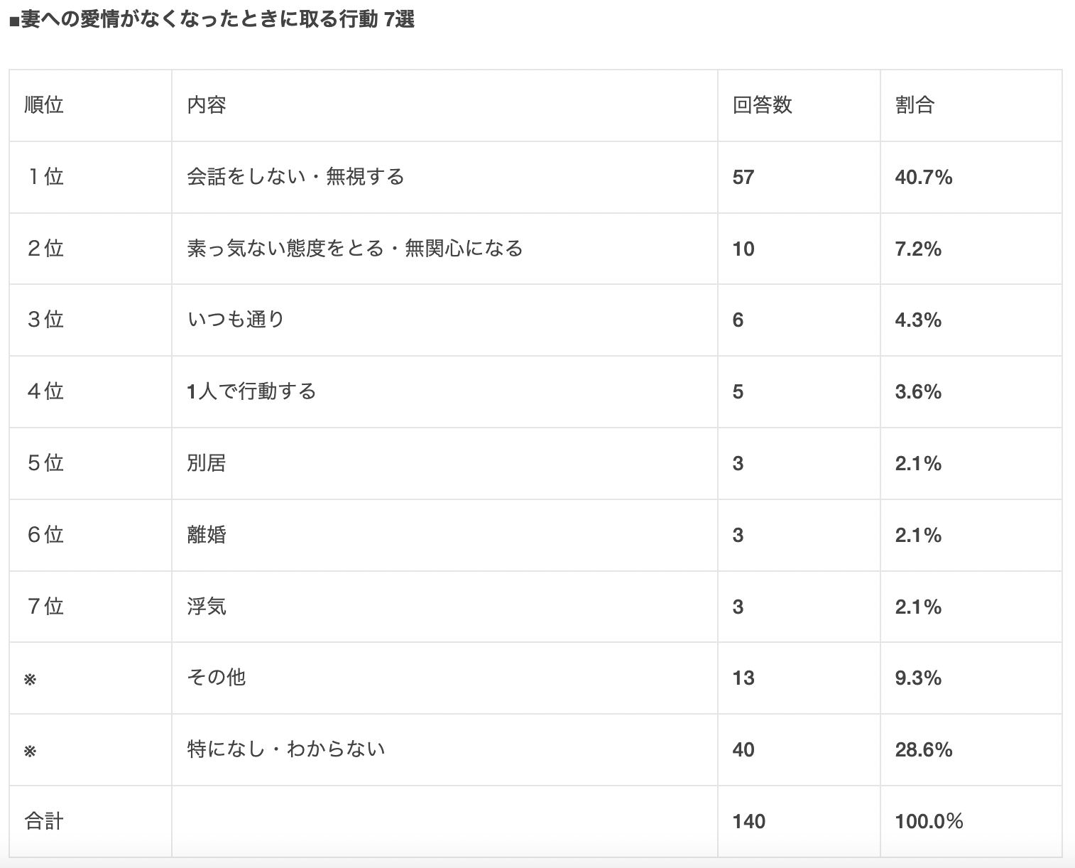 ほとんどの回答内容が妻を相手にせず生活をするという調査結果になりました。