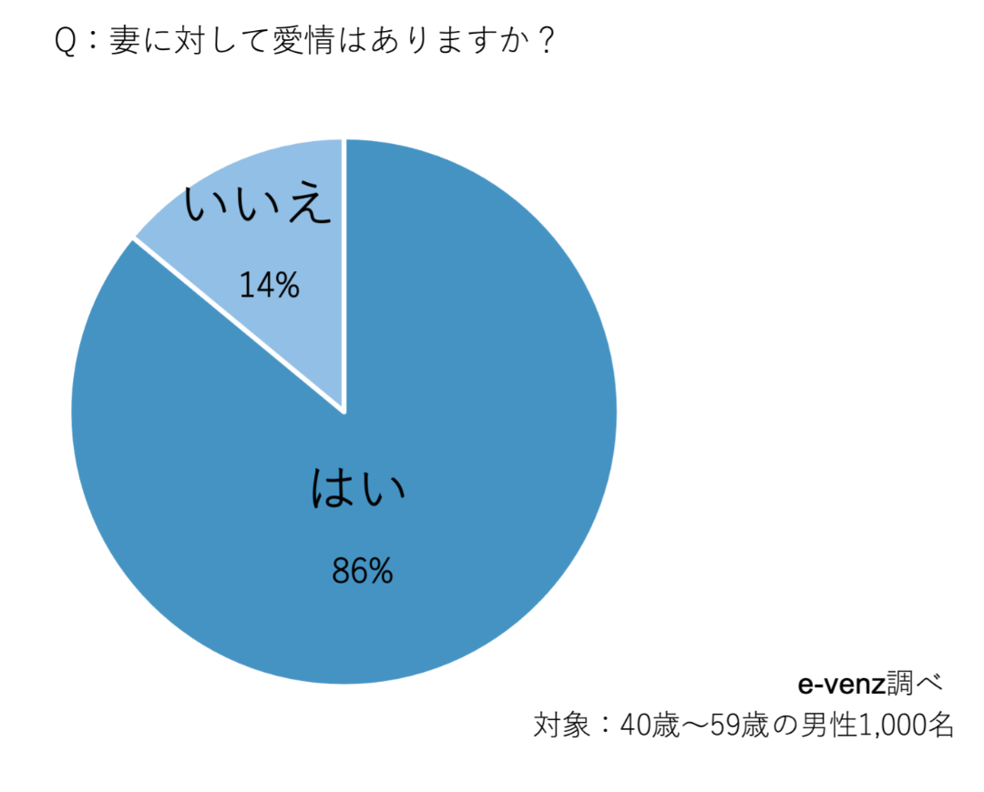 ほとんどの方が「妻に対して愛情はある」と回答している一方で、14%の男性が「愛情ない」と答えています。