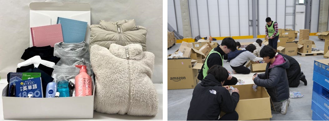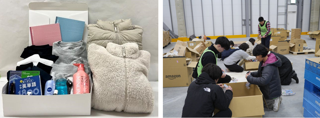 また、株式会社ファーストリテイリングの協力によりダウンジャケットやタイツ等を「子ども応援パーソナルボックス」の第1弾として、集団避難をした輪島市の中学生約250名に届けました(※写真は一例のイメージであり、内容は一人ひとり異なります)。今後も防寒具や肌着等の支援を継続的に実施します。