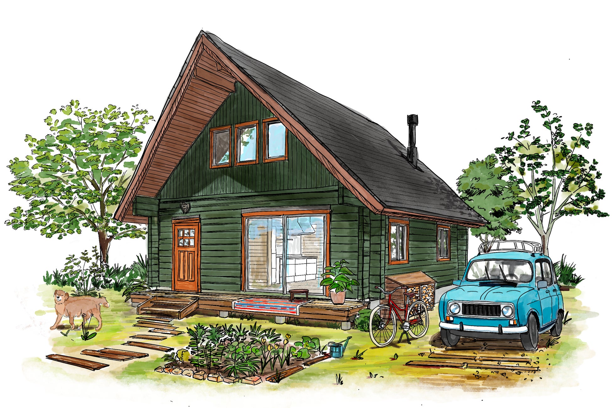 おおらかで素朴なログの風合いに、個性的なカラーリングで遊びごころを加えました。