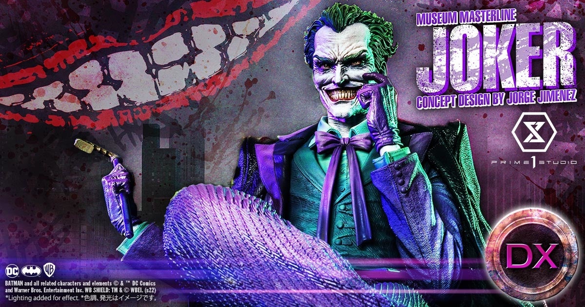 株式会社プライム1スタジオのハイエンド・ブランド、「PRIME 1 STATUE(プライム1スタチュー)」。そのミュージアムマスターラインより、『THE BATMAN-ザ・バットマン-』の《ジョーカー Concept design by Jorge Jiminez  DXボーナス版》を本日4月21日15:00より予約開始いたします。商品の発売は2023年7月~10月を予定しています。