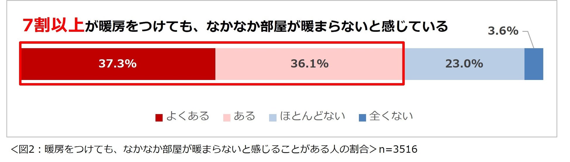 ■7割以上の人が、暖房をつけても、なかなか部屋が暖まらないと感じている。