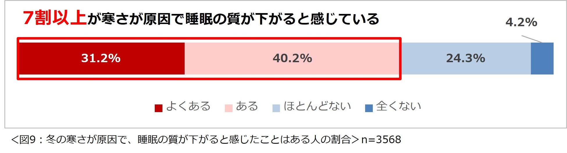 7割以上の人が、冬の寒さが原因で睡眠の質が下がると感じたことがある。
