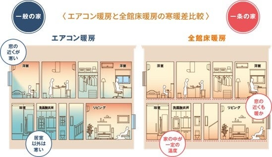 住まいの温度差が少なく、家中まるごと暖かい。一条工務店の「全館床暖房」