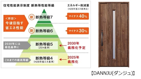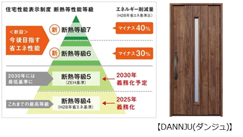 断熱等級7の早期対応を可能にした、超断熱玄関ドア「DANNJU(ダンジュ)」は、「2023年度 省エネ大賞(製品・ビジネスモデル部門)」において、「省エネルギーセンター会長賞」を受賞しています。