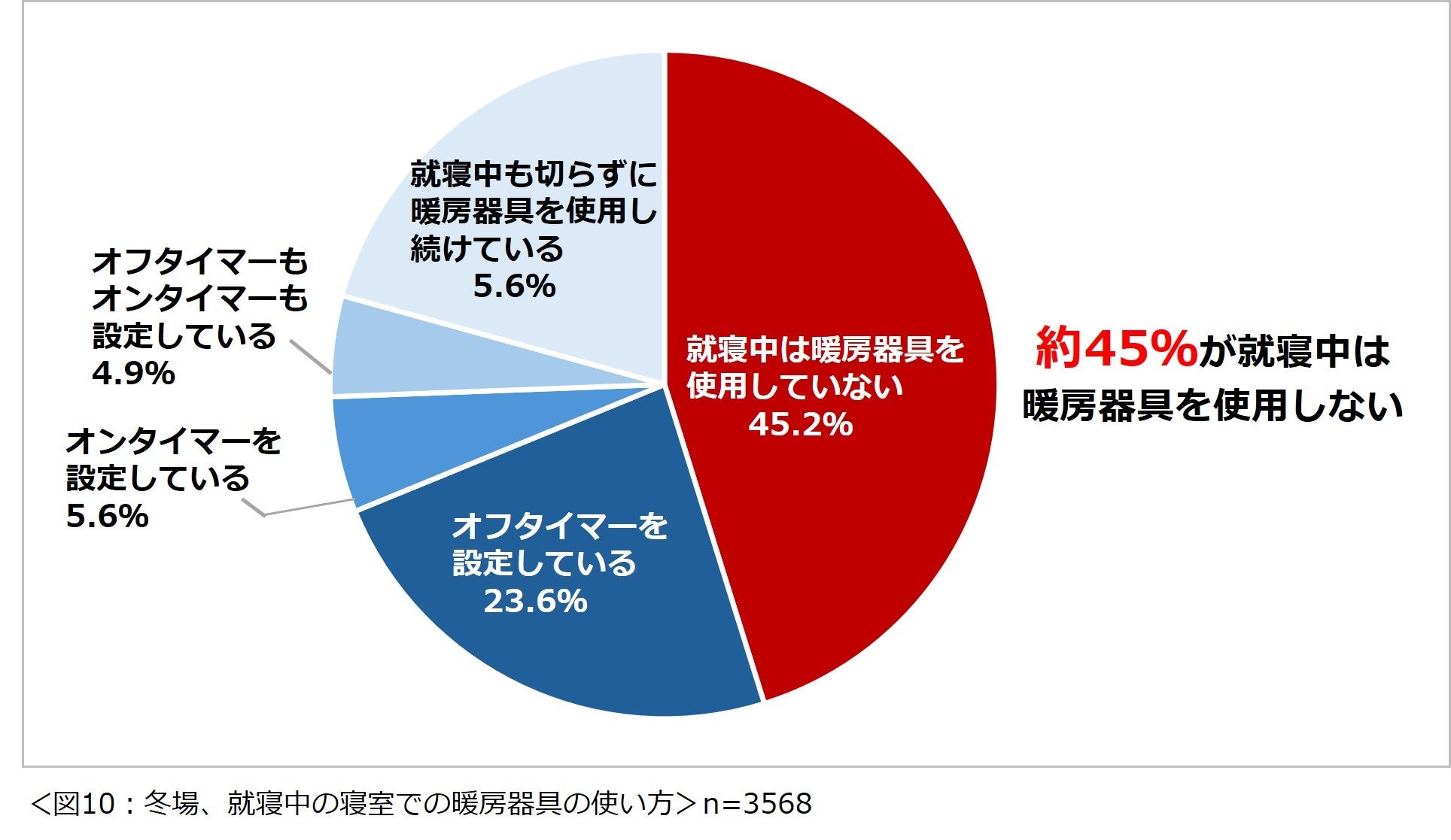 約45%の人が、冬場、就寝中に寝室で暖房器具を使用していない。