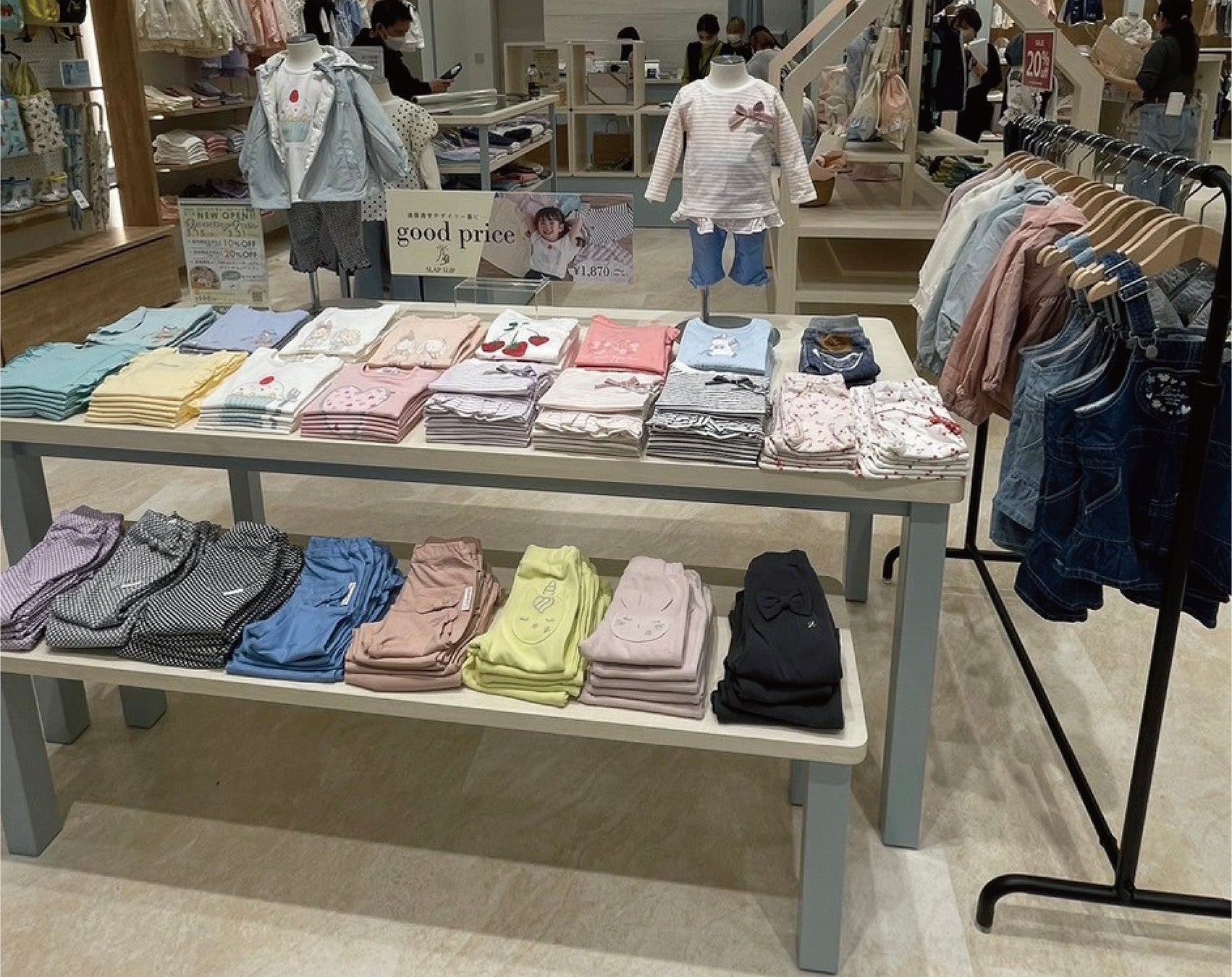 ゆったりとお子様と一緒にお買い物を楽しんでいただけるよう、優しさと温かさのある木調のシンプルかつナチュラルな空間を提供いたします。