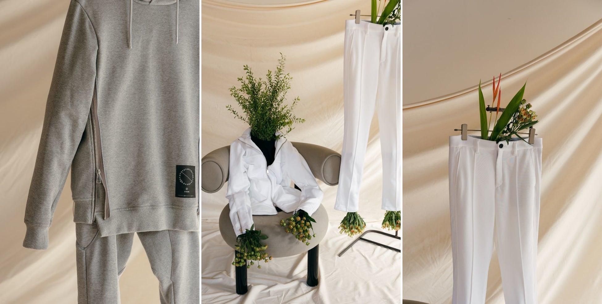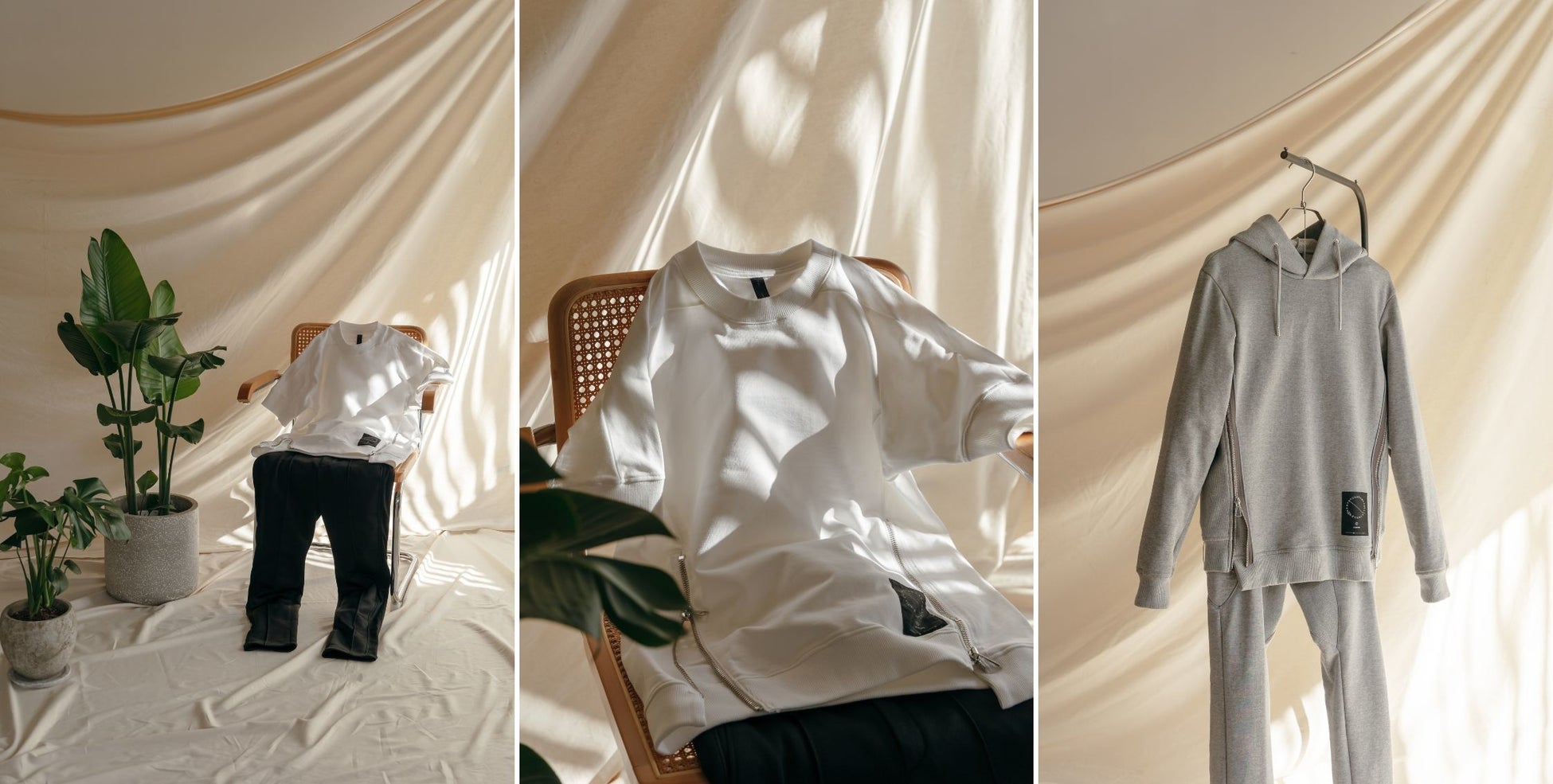 R=ROOMをテーマに、ただ着心地が楽なだけの部屋着ではなく、リラックスしながらもライフスタイルを強調することで、そのまま出かけられる服を提案。都会的な生活を送る人に向けた、洗練されたクリエイティブを展開していきます。