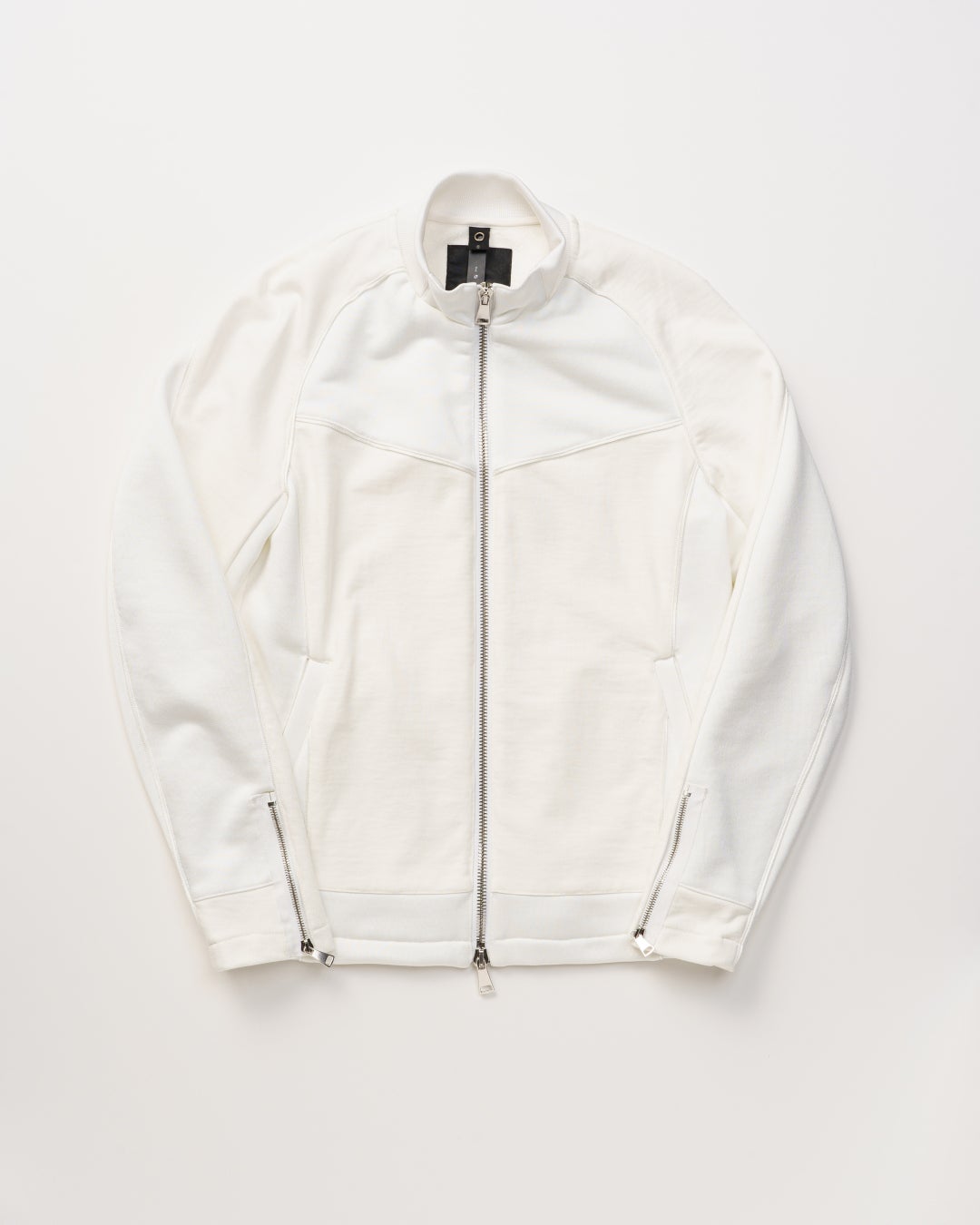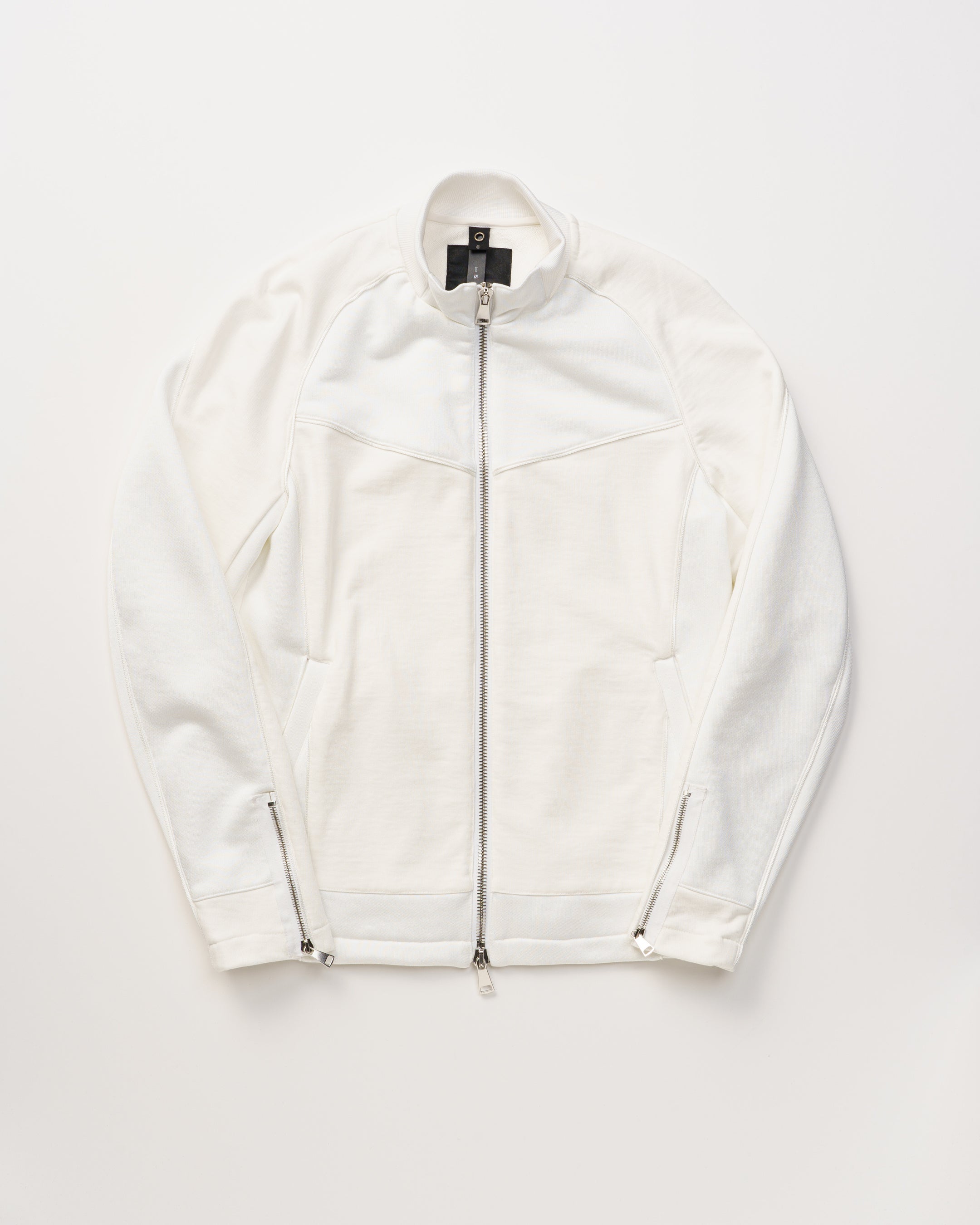 切り替え毎に挟み込むコードパイピングが機能性を持たせたカッティングのアクセントに。強調しすぎない異素材コンビ使いが効果的に配置されていることによって、デザイン性と運動量を確保。裏毛素材の心地よさを最大限に生かしながらシャープなイメージをくずさず快適さをカッティングで表現したブルゾン。