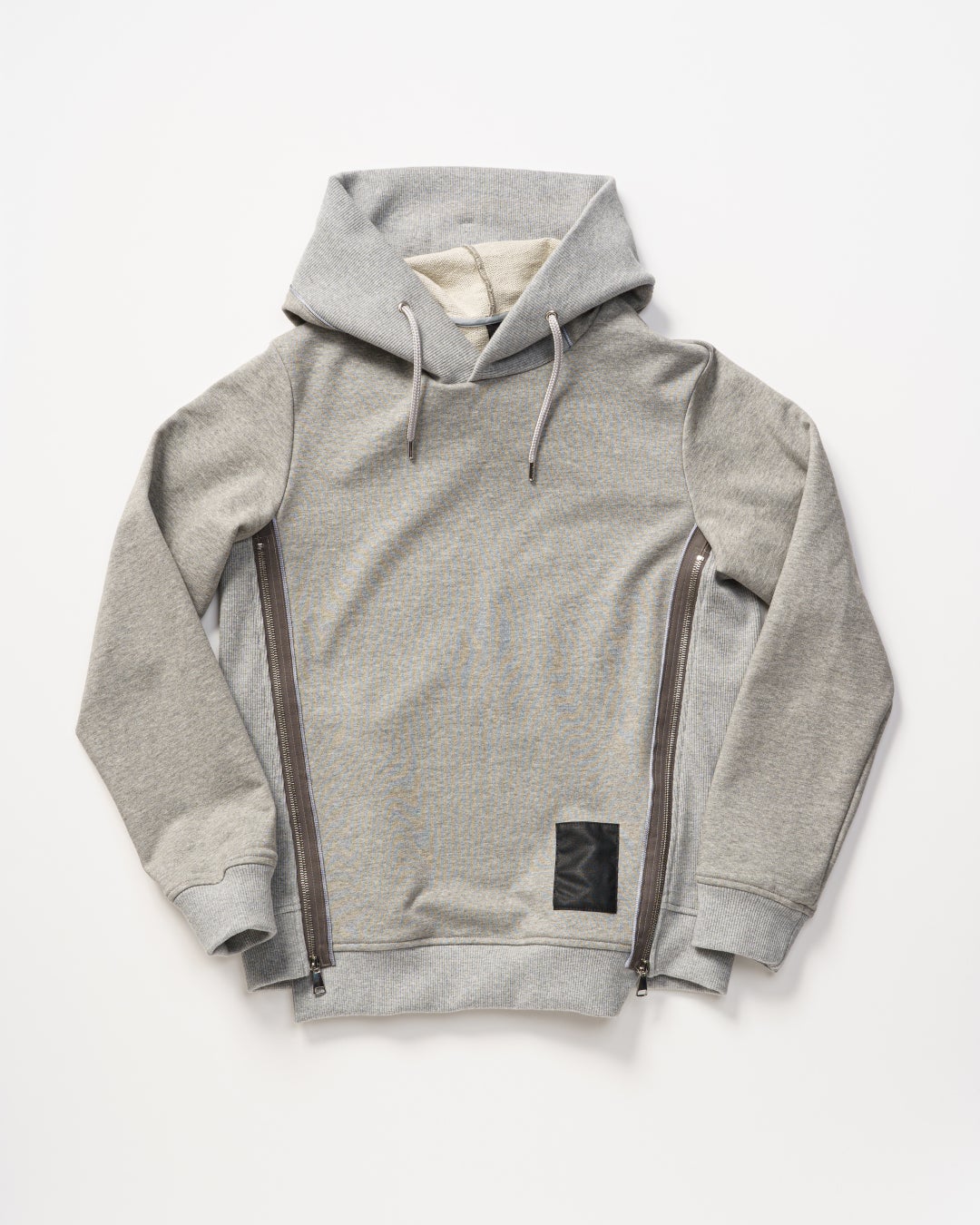 「両脇のZIPが着こなしのバリエーションを豊富に。片方開けてインナーを効果的に見せるなど、着ることで感性を磨ける仕様。フードの端をリブで切り替えることで、後ろに垂らした際まるで衿のようにきれいに収まる立体的設計。