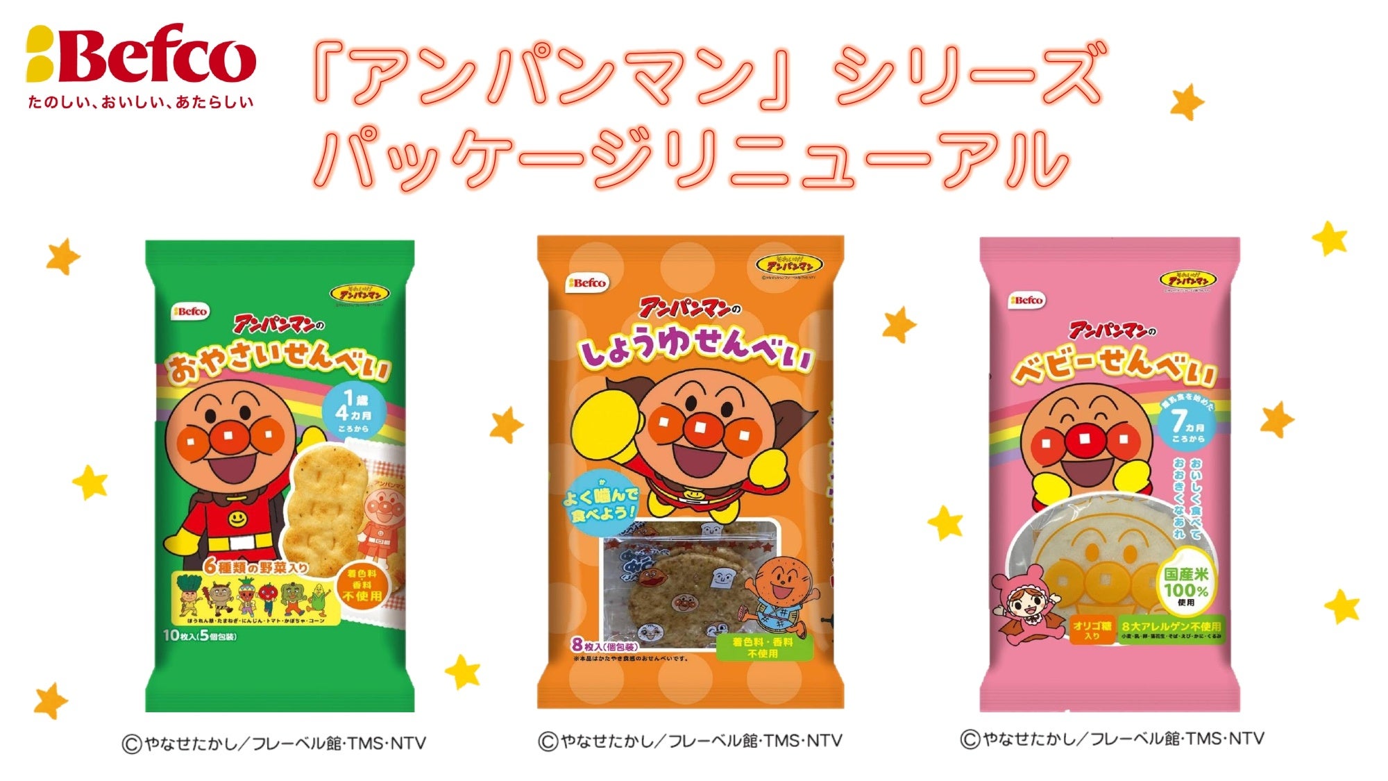“ばかうけ””瀬戸しお””星たべよ”などの米菓を製造販売する株式会社栗山米菓(本社:新潟県新潟市、代表取締役社長:栗山大河)は、このたび、幅広い世代に愛され続けている「アンパンマンシリーズ」のうち、「おやさいせんべい」「しょうゆせんべい」「ベビーせんべい」の3商品について、2025年8月生産より順次パッケージをリニューアルいたします。