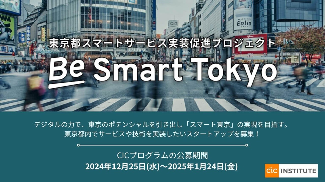 CIC Institute(本社:東京都港区虎ノ門、職務執行者: Timothy Rowe)は、昨年度東京都より採択された3ヶ年のプロジェクト「東京都スマートサービス実装促進プロジェクト『Be Smart Tokyo』」において、2025年度参画希望スタートアップの公募を開始いたします。