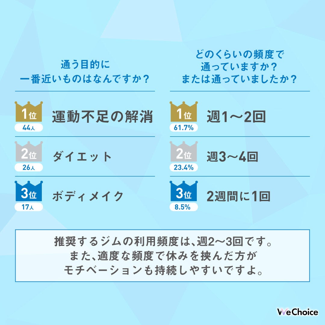 目的別ジムの利用頻度は、以下を参考にしてください。