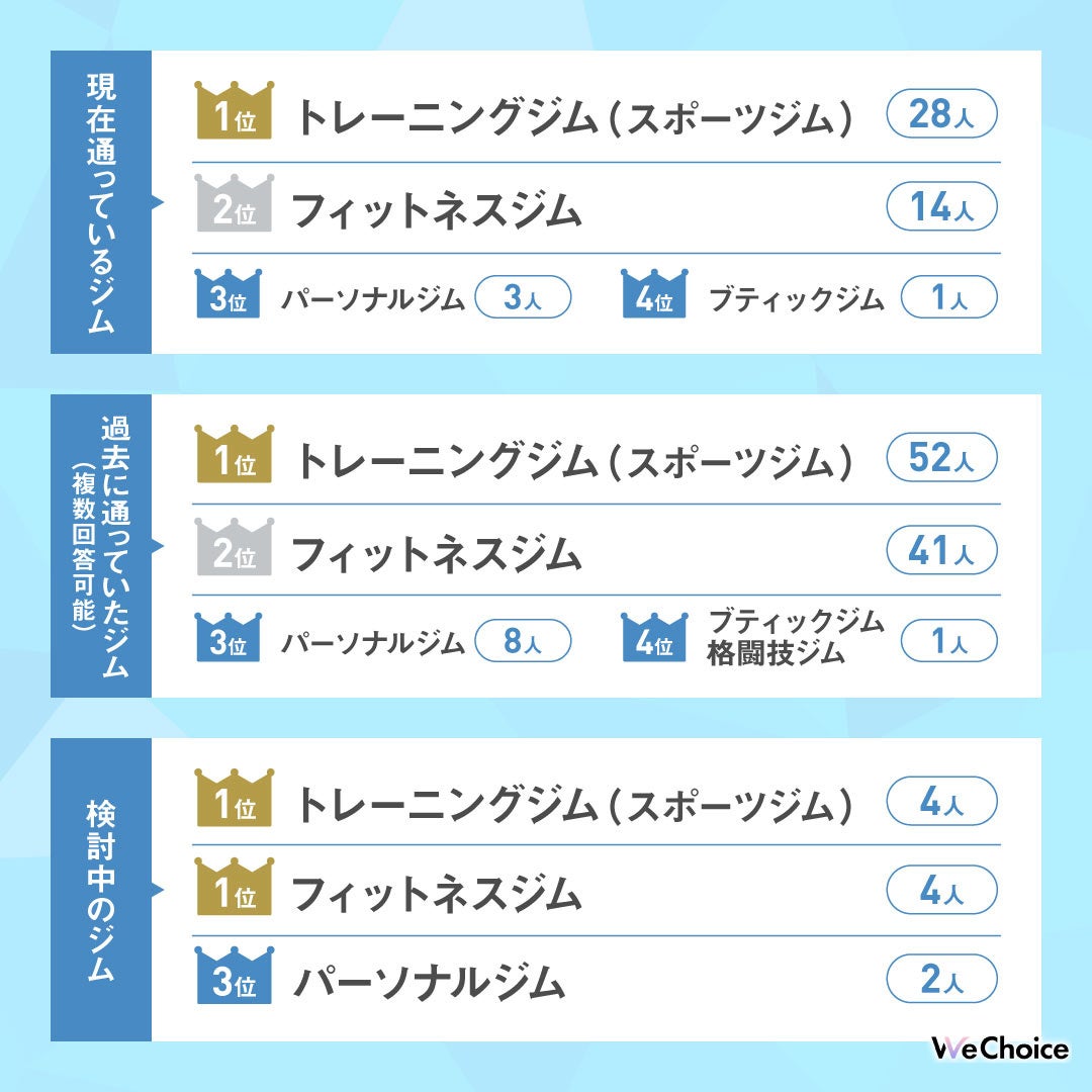 今回、「トレーニングジム」「フィットネスジム」に通っている方が多かったです。