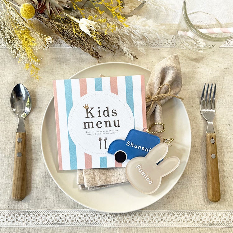 そんな大人気の「お子様ゲスト用アイテム」に、新たなデザインの「キッズ席札」が2種類リリースされました♪