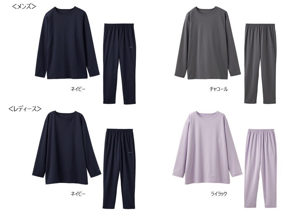 2022年の『COMFORT PUNCH』は、おうち時間や就寝時に着ていただくラインとして、より気軽に着られるセットアップを新たに展開します。さらに、手に取りやすく、おうち時間に馴染みの良い色に全カラーリニューアル。メンズは前モデルよりも青み寄りの深いネイビーとチャコール、レディースは同じくネイビーと明るく優しい印象のライラックのそれぞれ2色展開です。